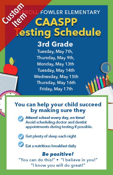 CAASPP Testing Schedule Posters & Flyers (11"x17" Posters and 5.5"x8.5") FREE